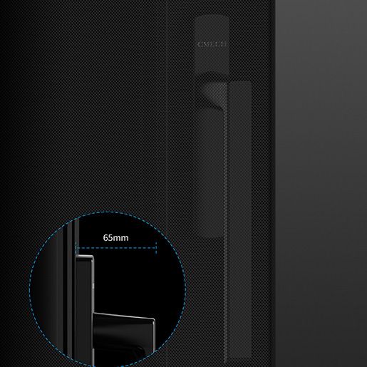 该执手采用65mm低高度设计,专为带纱网及空间受限的门窗场景优化。工业铝合金一体铸造成型结构结合内置补偿功能,有效消除操作间隙,在狭窄框扇中仍保持顺滑稳定的启闭体验。